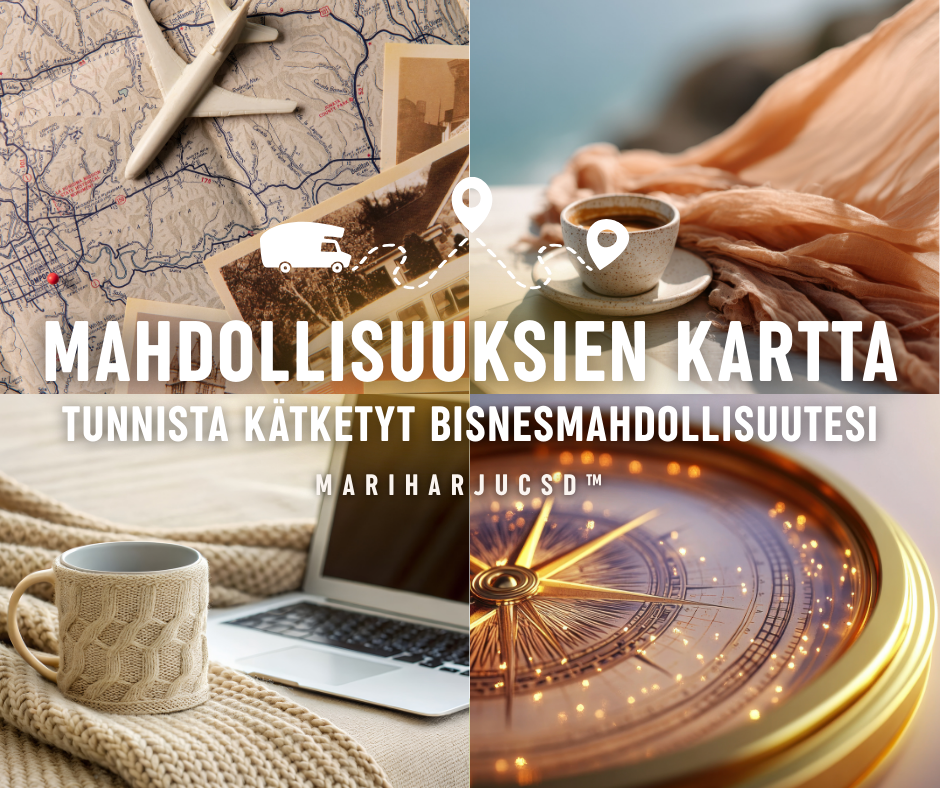 Tämä harjoitus avaa näkökulmia juuri sinun lukuisiin mahdollisuuksiisi. Pääset keskittymään nimenomaan omiin, ainutlaatuisiin vahvuuksiisi - niihin, joita ei kenelläkään toisella ole täsmälleen samanlaisina. Sinun mahdollisuuksien karttasi on uniikki.