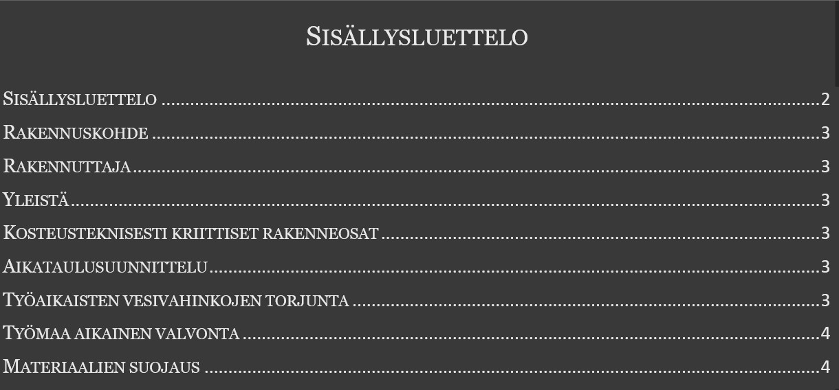 Kosteudenhallintasuunnitelma (esitäytetty). Rakentamislupahakemuksen liitteeksi